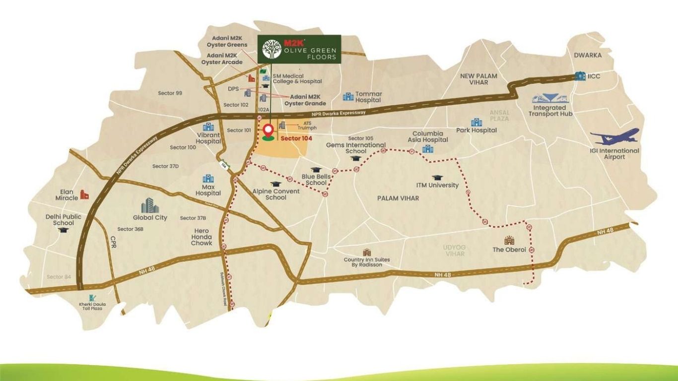 M2K Olive Green Floors lavish low rise residential development located in the Sector104 area of Gurugram at the vicinity of Dwarka Expressway.